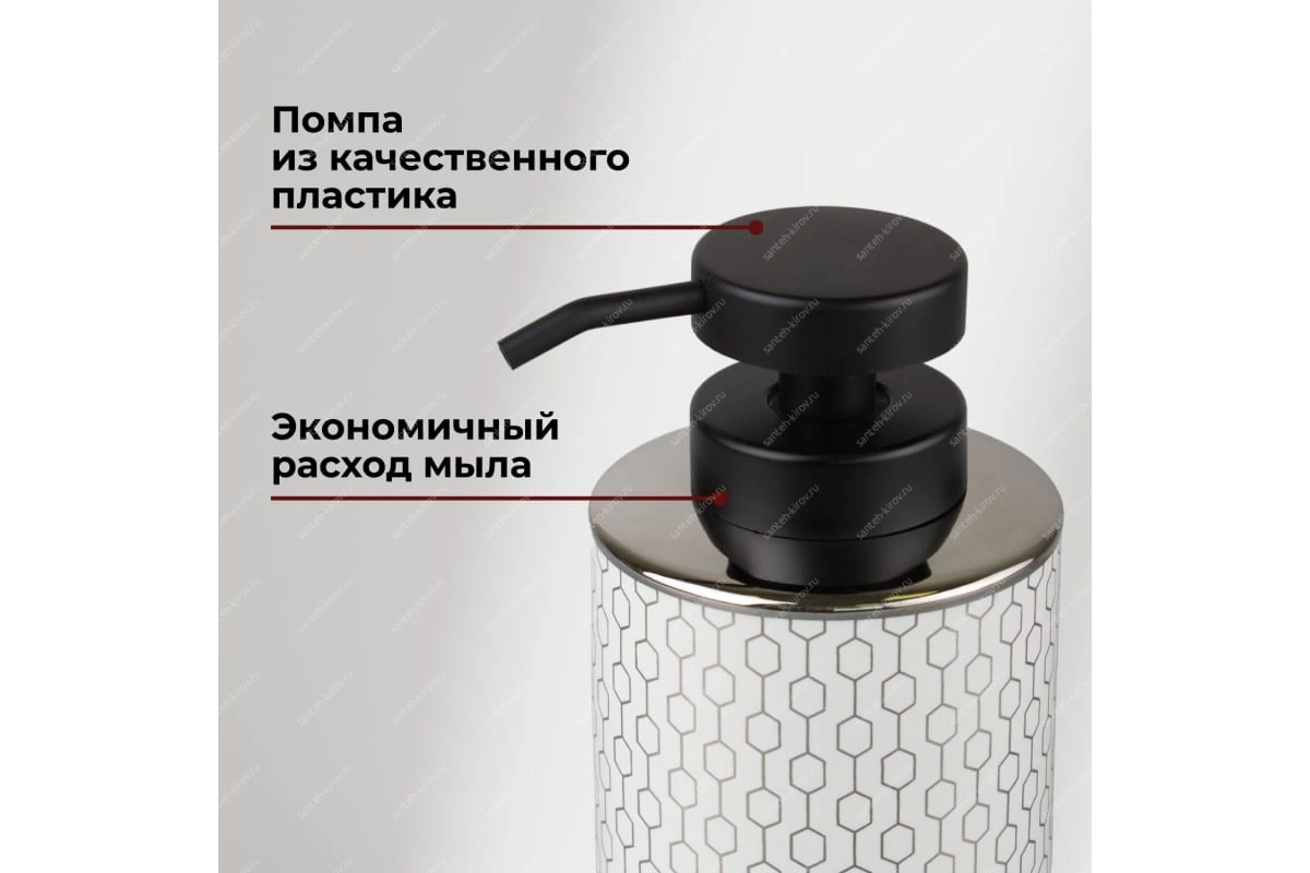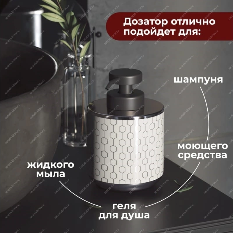 Предназначен для порционной подачи мыла, шампуней и других гелеобразных жидкостей.