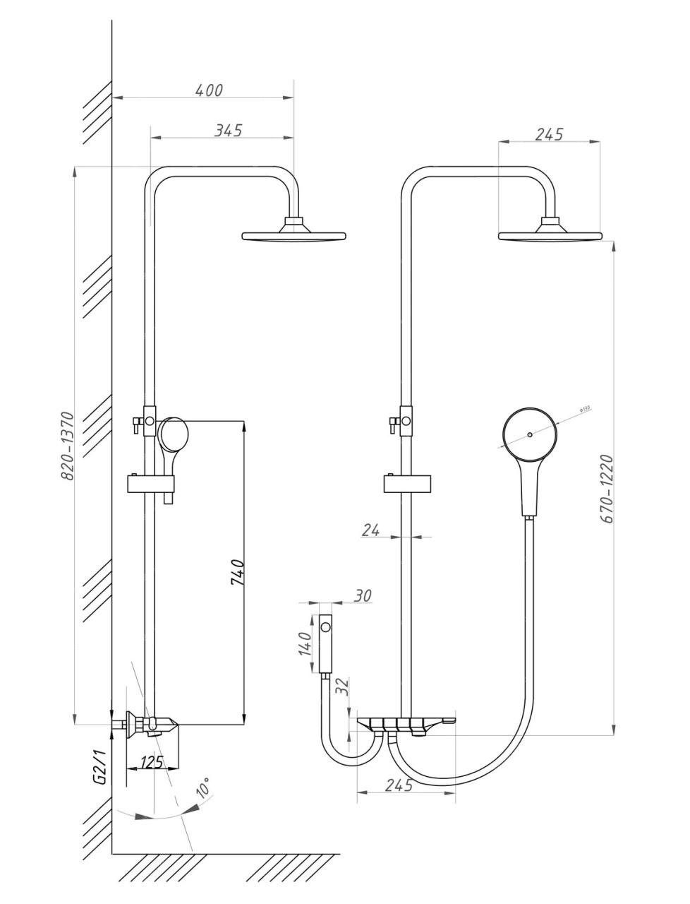 гулируемая высота — 820-1370 мм