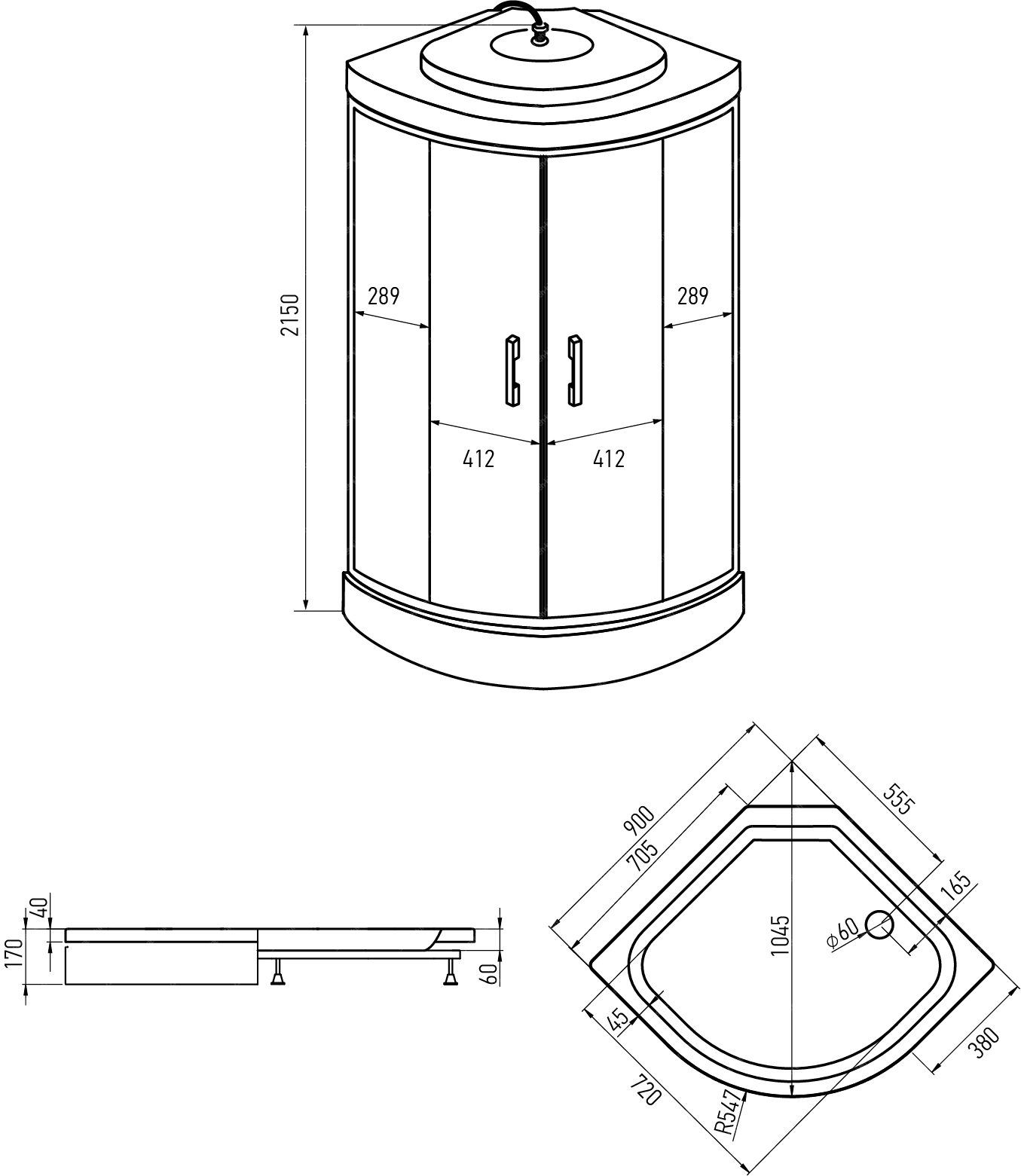 стекло 4 мм, ударопрочное, стеклянное, черное, 2 секции + пластиковая центральная стойка