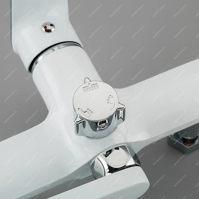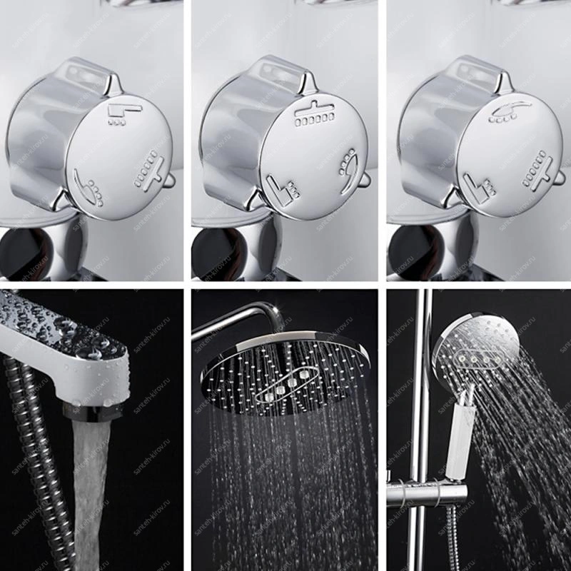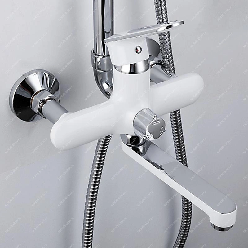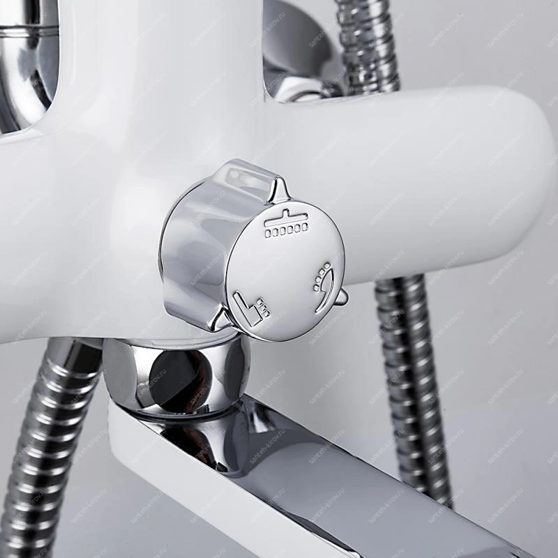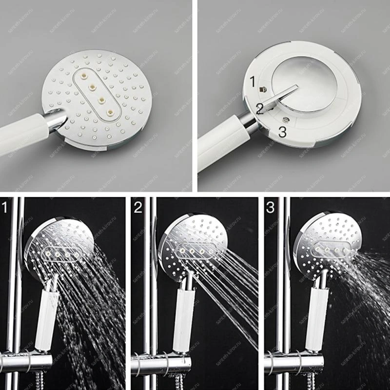 Душевая система со смесителем Frap F2449 имеет потрясающий современный дизайн с белым и хромированным покрытием. У душевой системы очень хорошие лейки. Тропический душ с функцией гидромассажа, который включается при помощи вращения самой лейки. Также и ручная, но уже с тремя режимами работы. Смеситель для стойки латунный, с коротким поворотным изливом - Frap F2449 хорошо впишется в маленькую кабину.