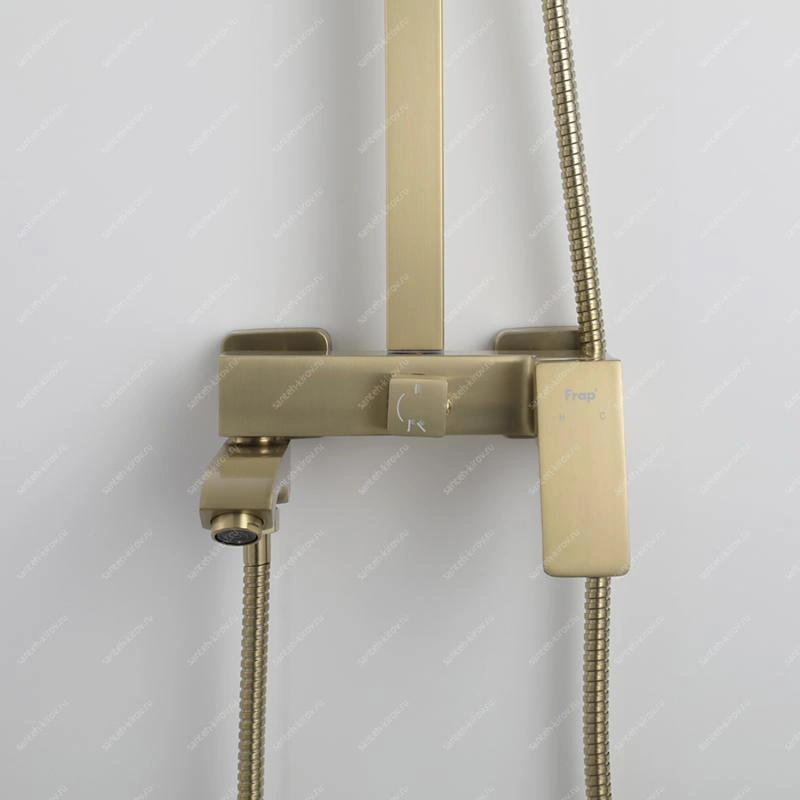 Душевая система Frap F2476-3 сатин золотой, латунь, тропический душ