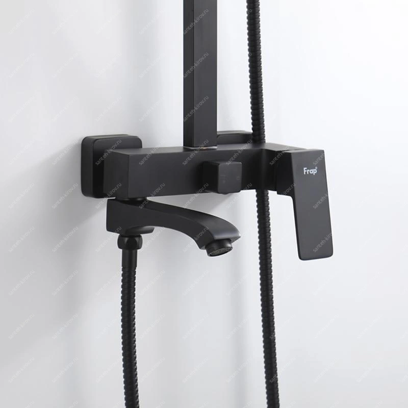 Смеситель для ванны с душем из латуни. Душевая система (стойка) для ванны (душа) с тропическим душем и лейкой со смесителем с душем. Душевая стойка со смесителем FRAP – это комплексное решение для ванной комнаты, которое заключает в себе функциональный смеситель и удобную душевую стойку.