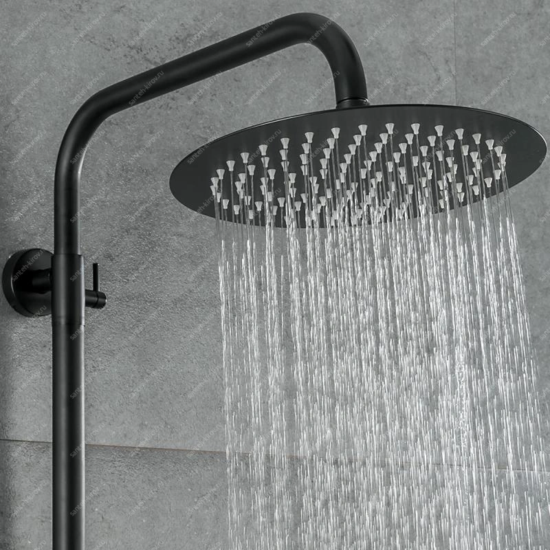 Душевая стойка с тропической лейкой и изливом Frap F24801-6 - это идеальное сочетание дизайна, цены и качества. F24801-6 в черном цвете впишется в любой интерьер ванной комнаты.