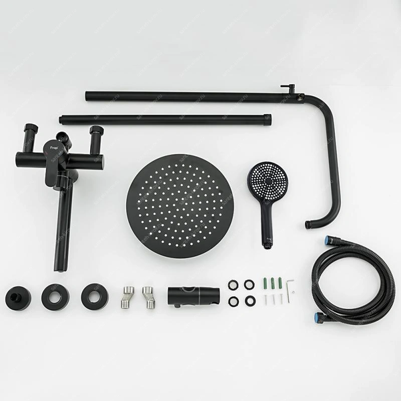 Душевая система Frap F24801-6 цвет черный, нержавеющая сталь, тропический душ