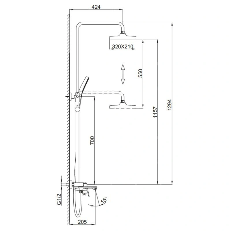 Размер верхнего душа - 320 х 210 мм