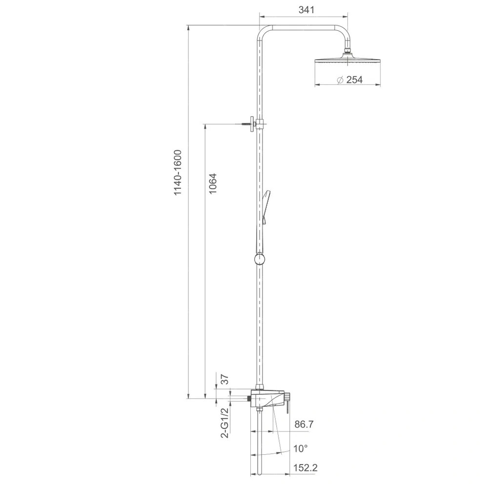 регулируемая высота — 1140-1600 мм