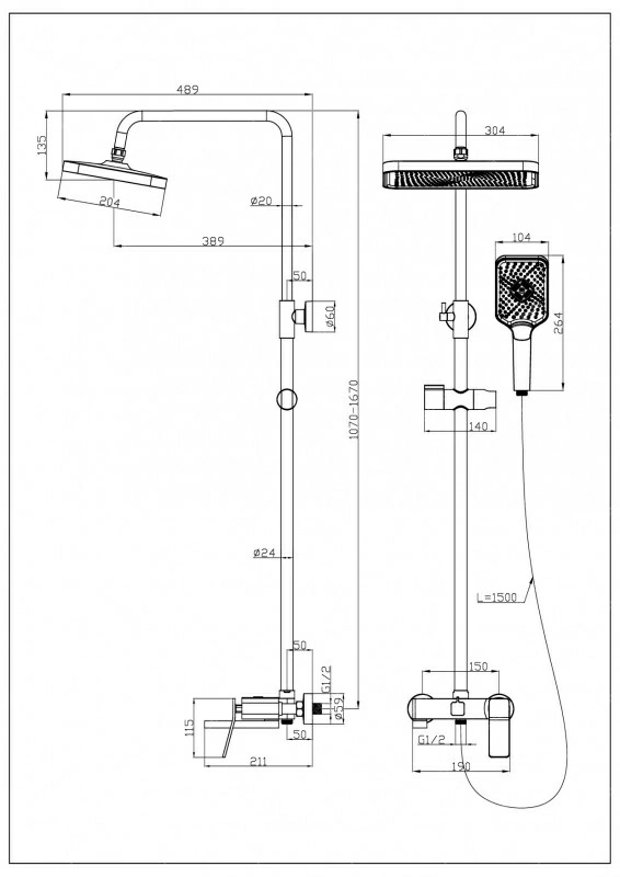 - Душевой шланг: стальная оплётка с 2-м замком. Длина шланга - 1,5 м.