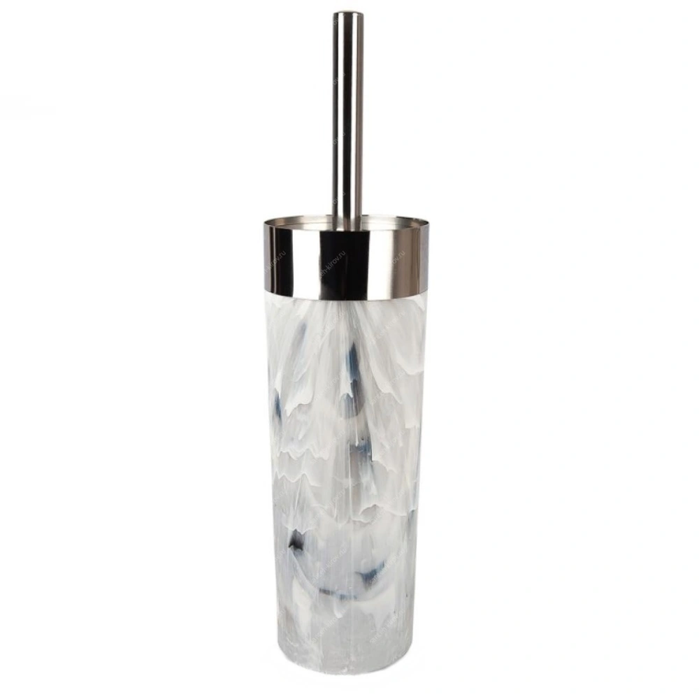 Ерш сантехнический напольный Мрамор включает в себя ерш с пластиковой хромированной ручкой и пластиковую подставку цилиндрической формы с пластиковой хромированной крышкой.