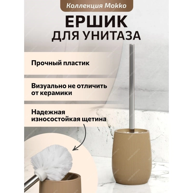 Ерш для унитаза, выполненный в цвете мокко, представляет собой стильный и функциональный аксессуар для ванной комнаты.