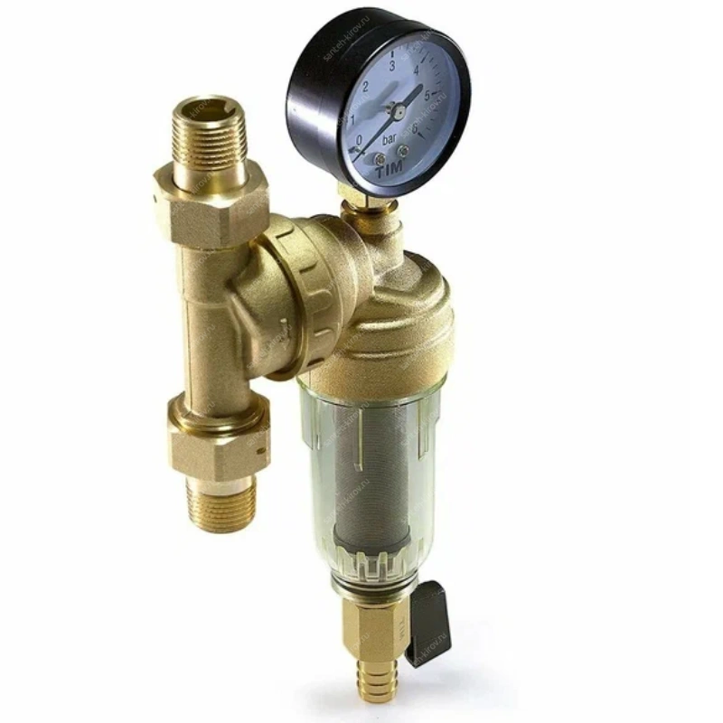 Фильтры для очистки водыФильтры грубой очисткиФильтр 1/2" шш с манометром TIM JH-1002W3