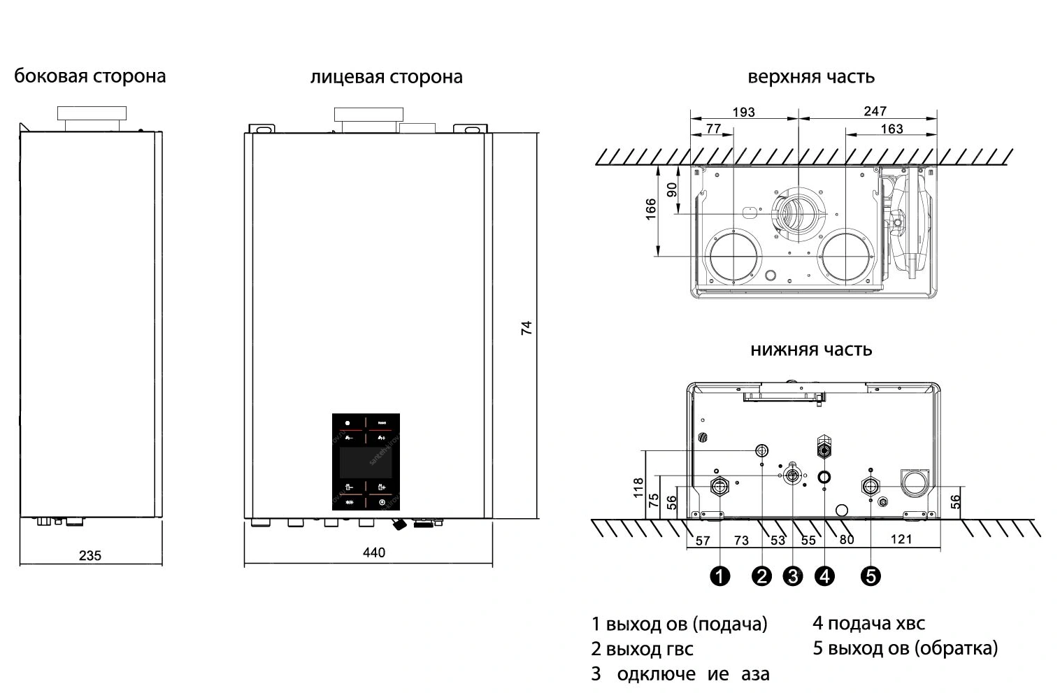 ○ котёл не занимает много места, имеет малую монтажную глубину от 235 мм;