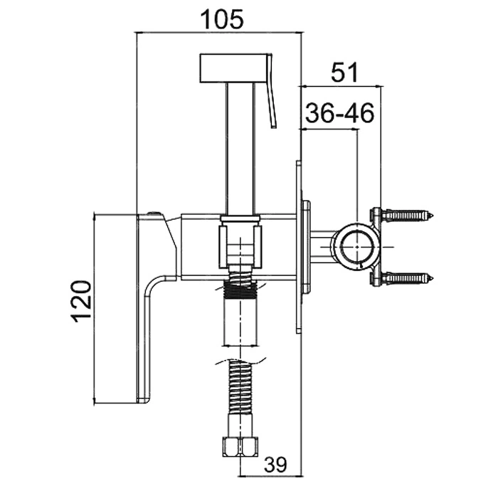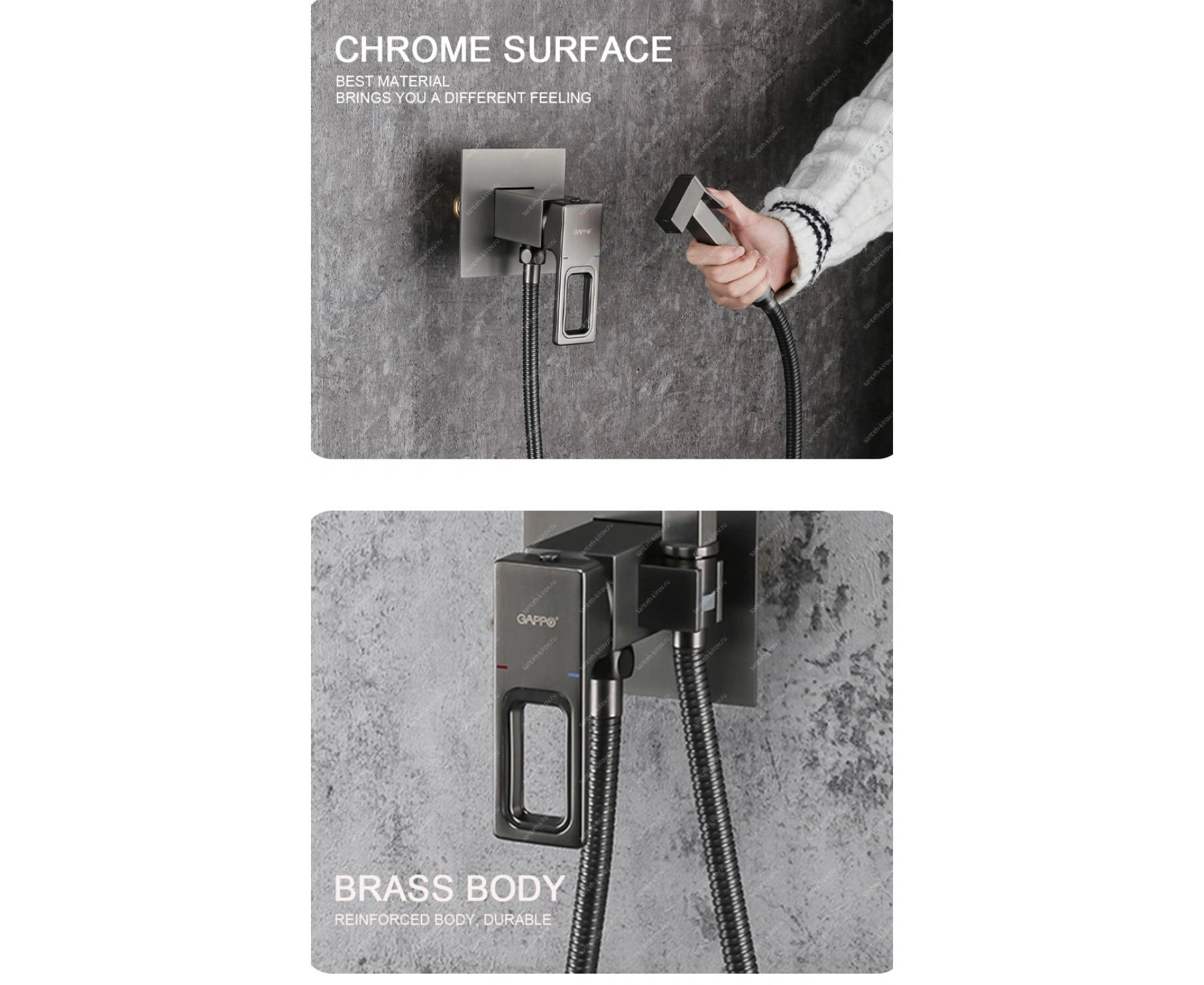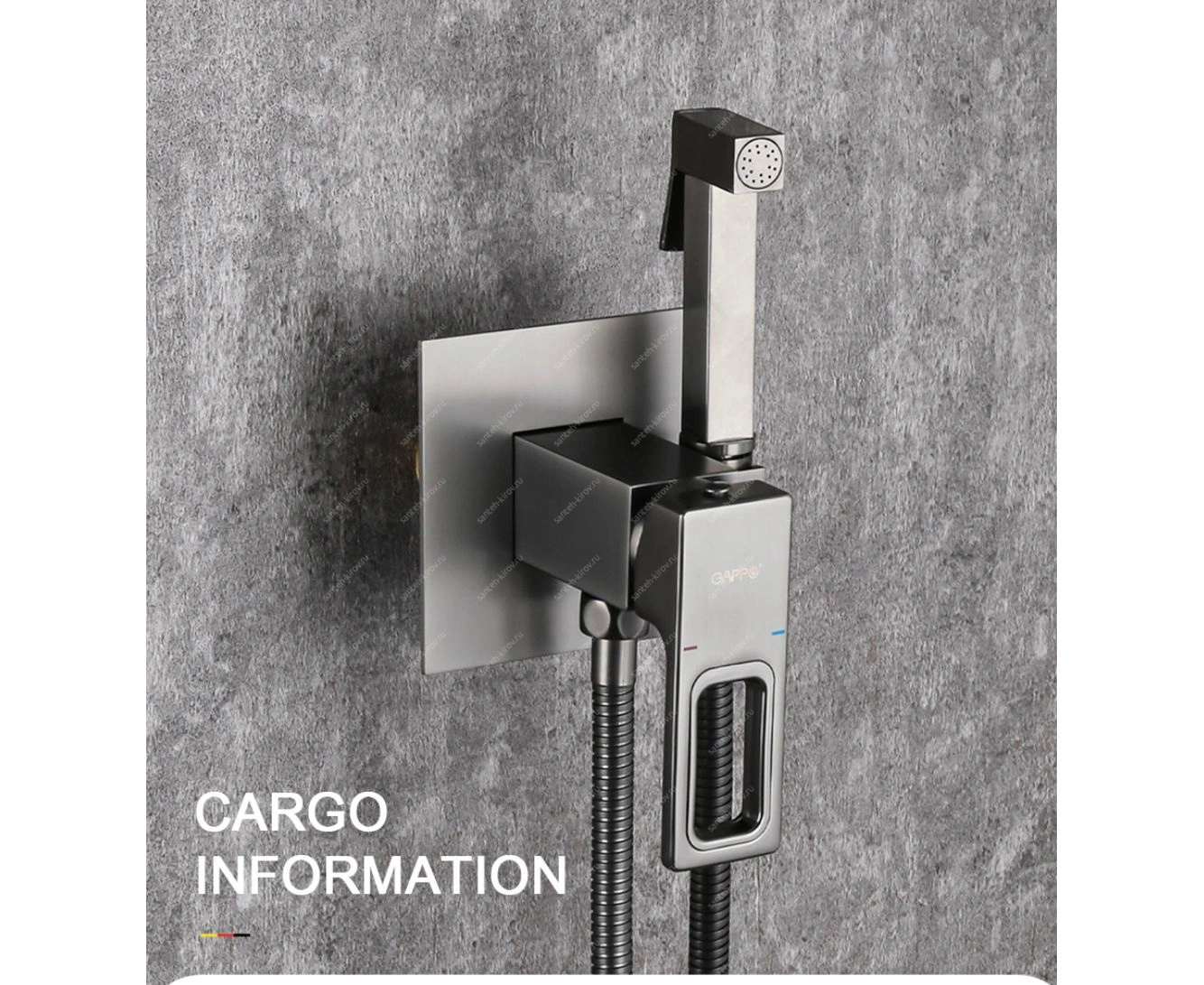 смеситель с латунной рукоятью, лейка для биде, кронштейн для лейки, шланг 1,2 м.