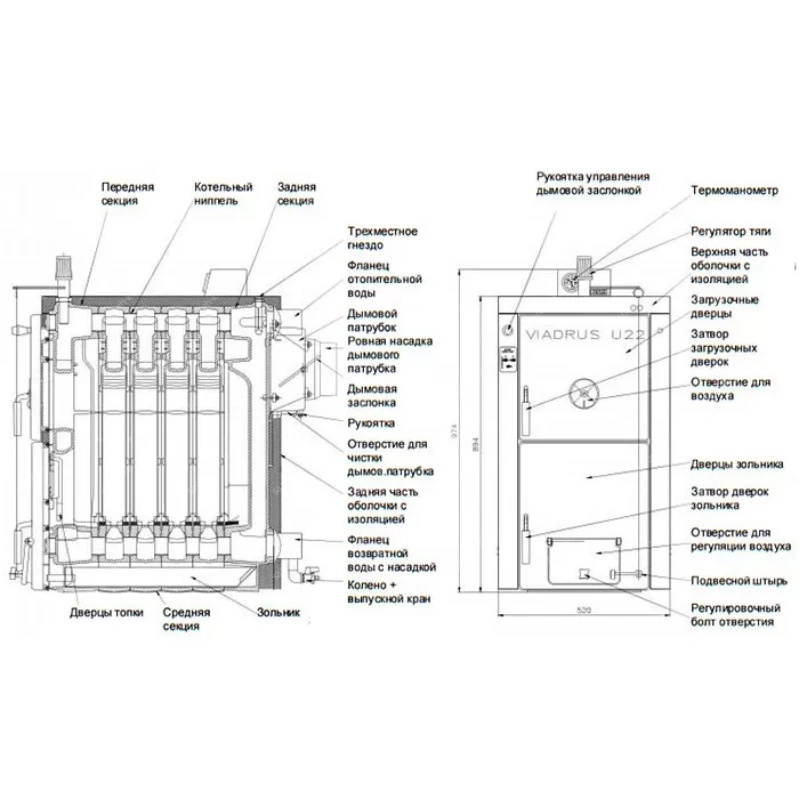 Котел твердотопливный VIADRUS U22 C-2 чугун