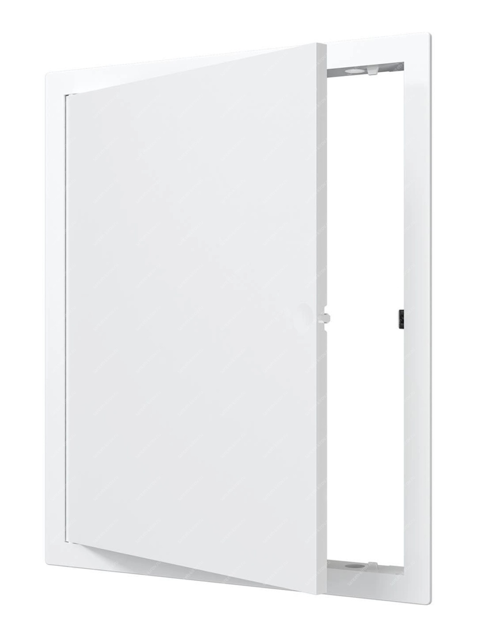 Нажимной замок фиксирует дверцу, не позволяя ей самопроизвольно открываться, за счет чего люк устанавливается не только в стену, но и в потолок.
