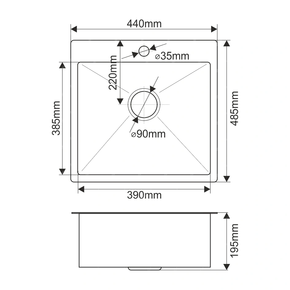 Мойка сатин Profline 44х48,5см 3,0х220мм MELANA R44485H