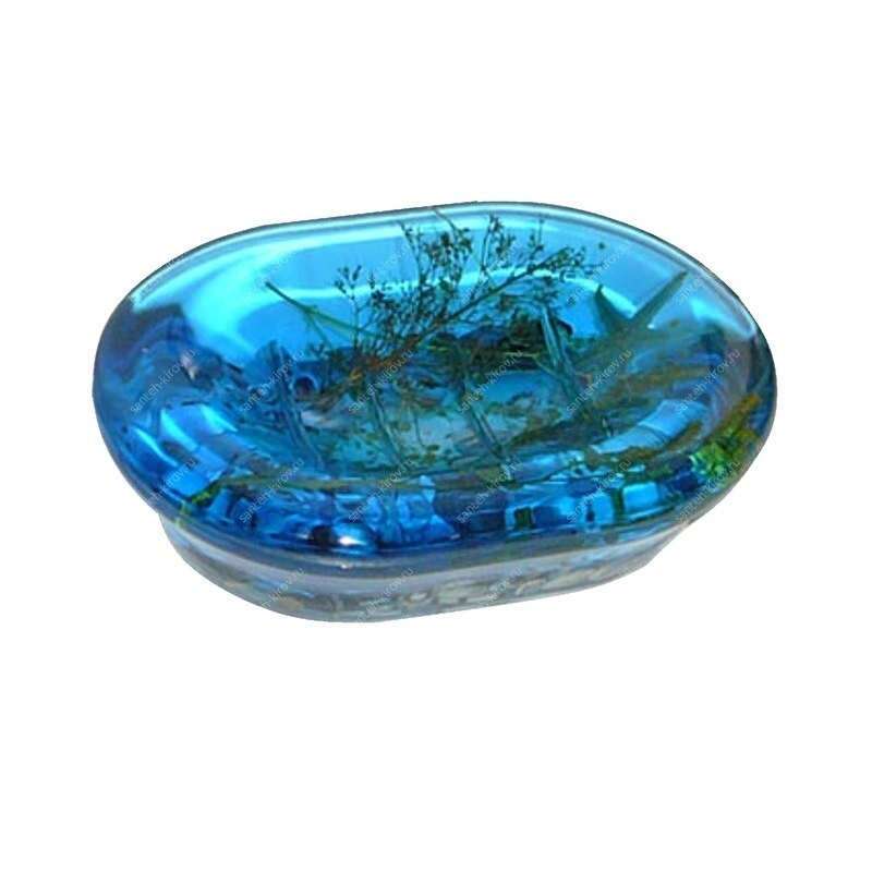Мыльница «А8759 В6 (синий)» – стильное изделие для хранения мыла в ванной комнате. Ее можно разместить на раковине или полочке. Она не занимает много места, при этом довольно практична и удобна в обиходе. Корпус изготовлен из прозрачного пластика. Пустое пространство заполнено минеральным маслом и элементами декора.