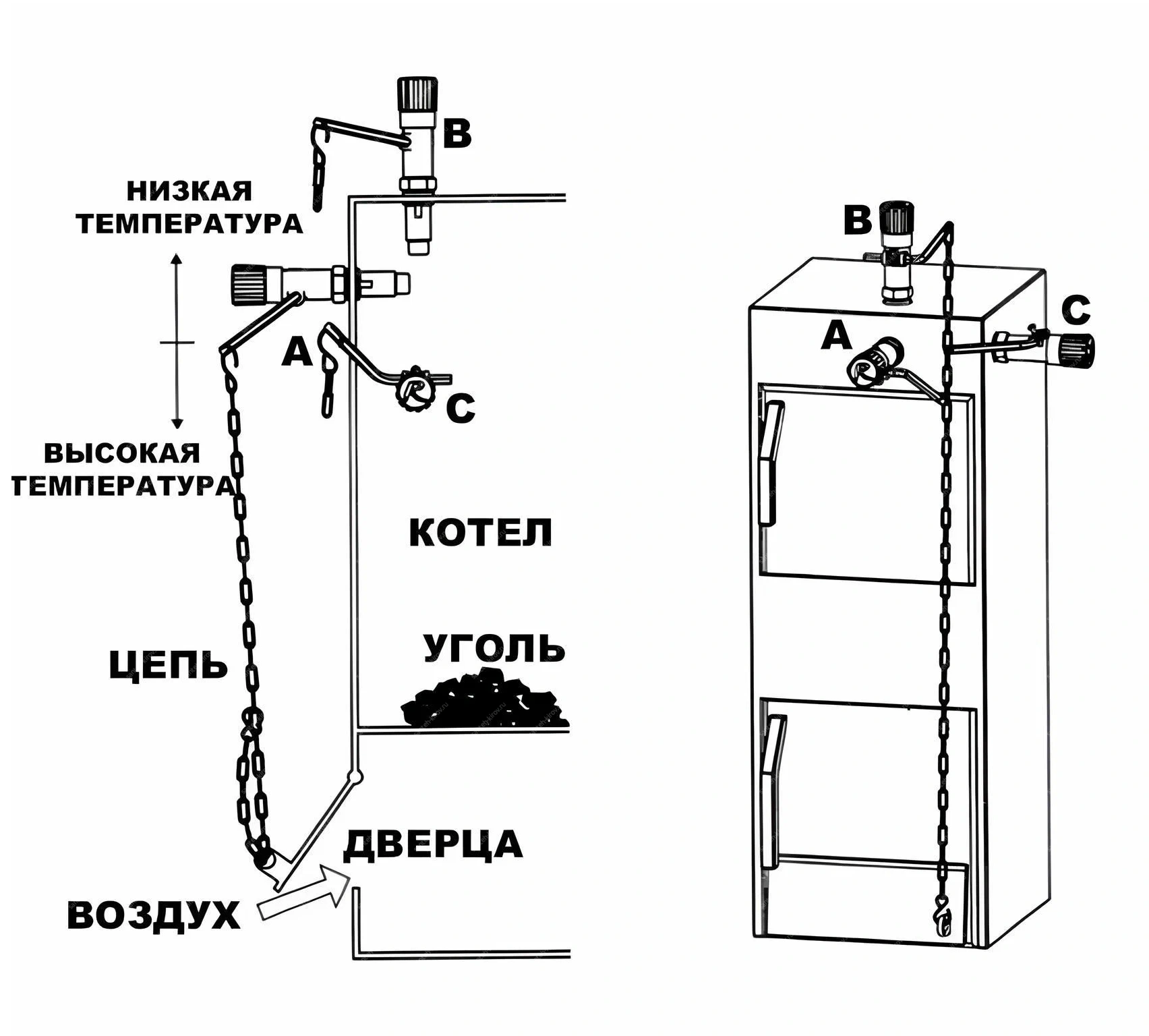 для регулировки доступа воздуха в камеру сгорания и интенсивности горения топлива, путем открытия или закрытия воздушной заслонки