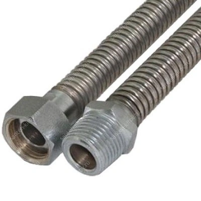 Материал — сильфонная трубка из нержавеющей стали, фитинги из хромированной латуни