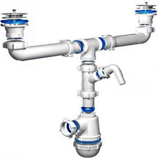 сифон двойной (под мойку с двумя чашами) с отводом для стиральной машины