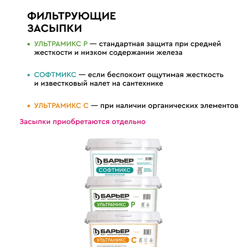 Все засыпки БАРЬЕР обеспечивают базовую очистку, но у каждой есть своя специфика и фокус: