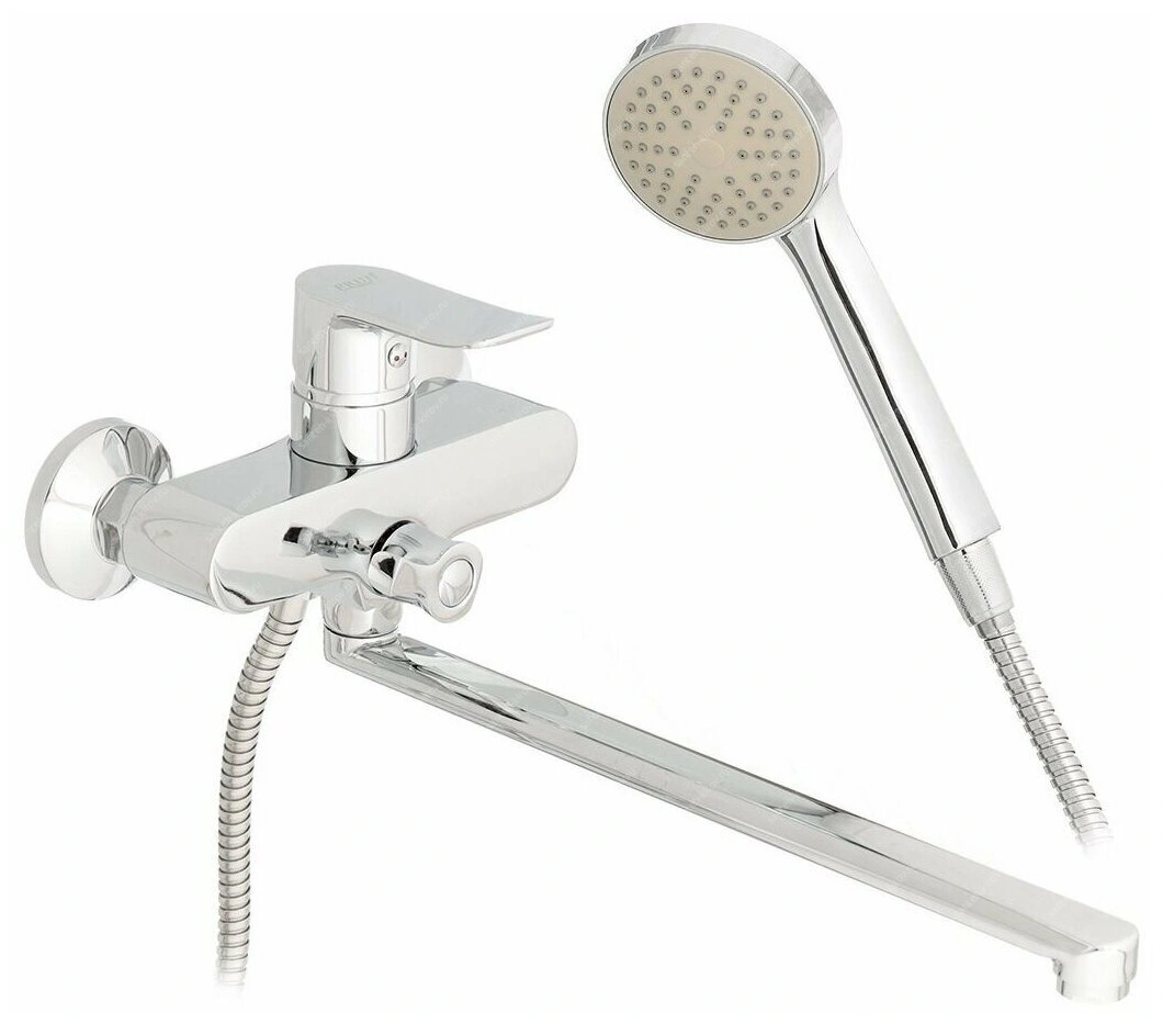 Смеситель для ванны и душа монтируется на стену. Этот сантехнический прибор служит для обеспечения нужной температуры воды и её напора. Внутри смеситель для ванны и душа имеет кран-буксы или картридж, благодаря которым смешивается холодная и горячая вода. Ширина подключения, мм — 150