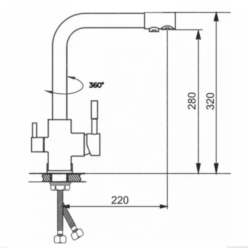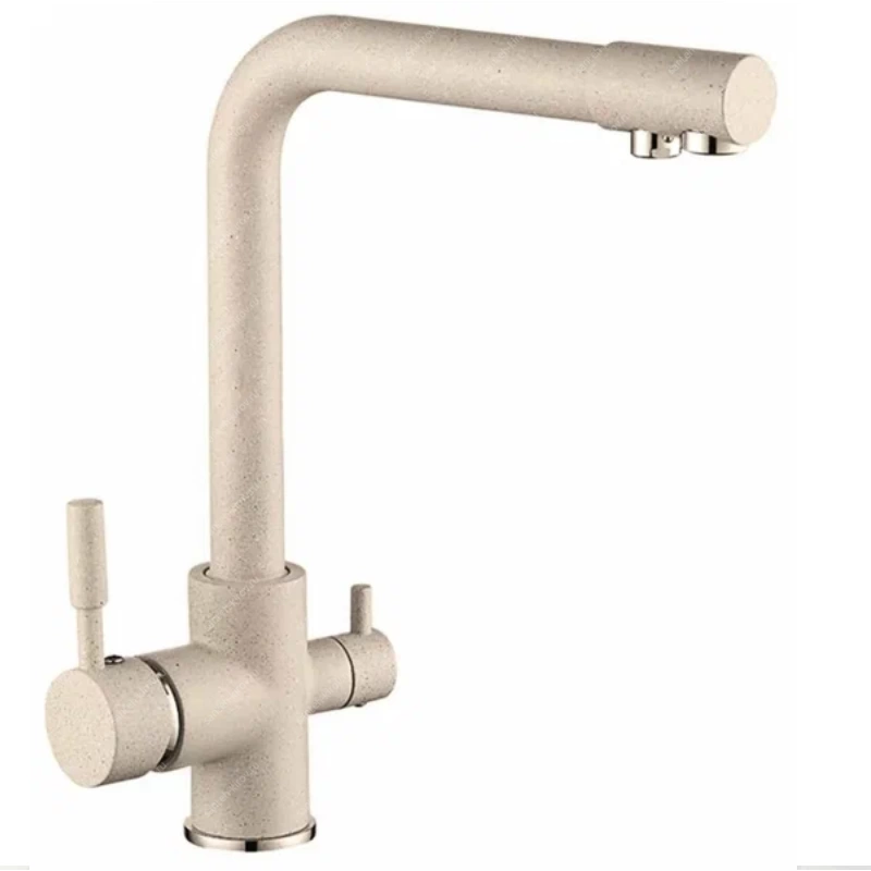 Смеситель для кухни, с подключением фильтра питьевой воды, монтируется на мойку. Этот сантехнический прибор служит для обеспечения нужной температуры воды и её напора. Внутри смеситель для кухни имеет кран-буксы или картридж, благодаря которым смешивается холодная и горячая вода.