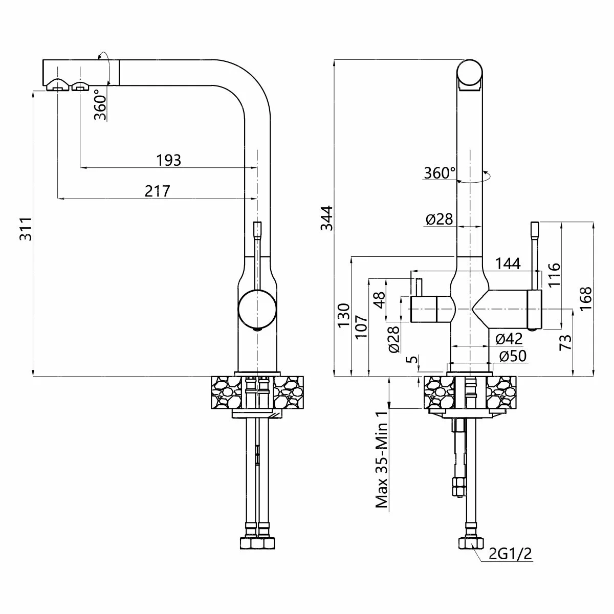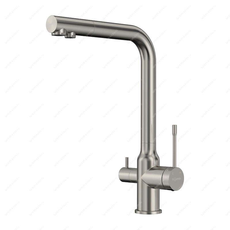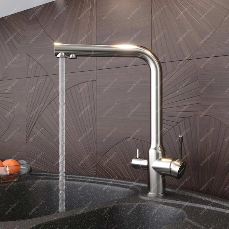 Смеситель для кухни, с подключением фильтра питьевой воды, монтируется на мойку. Этот сантехнический прибор служит для обеспечения нужной температуры воды и её напора. Внутри смеситель для кухни имеет кран-буксы или картридж, благодаря которым смешивается холодная и горячая вода.