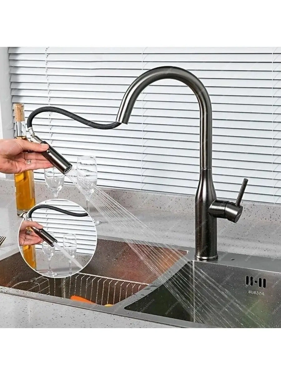 Смеситель для кухни монтируется на мойку. Этот сантехнический прибор служит для обеспечения нужной температуры воды и её напора. Внутри смеситель для кухни имеет кран-буксы или картридж, благодаря которым смешивается холодная и горячая вода.