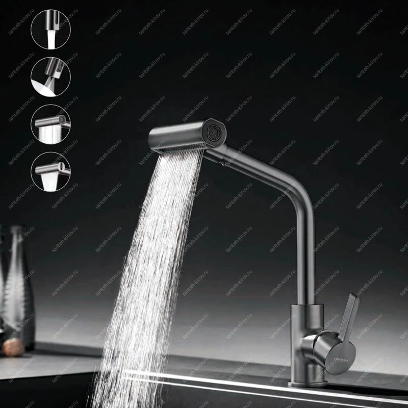 Смеситель для кухни монтируется на мойку. Этот сантехнический прибор служит для обеспечения нужной температуры воды и её напора. Внутри смеситель для кухни имеет кран-буксы или картридж, благодаря которым смешивается холодная и горячая вода.