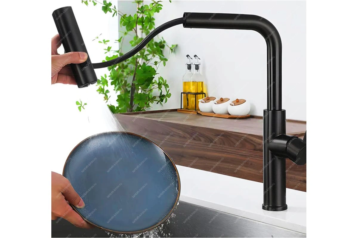 Смеситель для кухни монтируется на мойку. Этот сантехнический прибор служит для обеспечения нужной температуры воды и её напора. Внутри смеситель для кухни имеет кран-буксы или картридж, благодаря которым смешивается холодная и горячая вода.