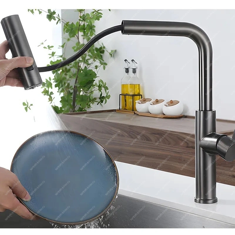 Смеситель для кухни монтируется на мойку. Этот сантехнический прибор служит для обеспечения нужной температуры воды и её напора. Внутри смеситель для кухни имеет кран-буксы или картридж, благодаря которым смешивается холодная и горячая вода.