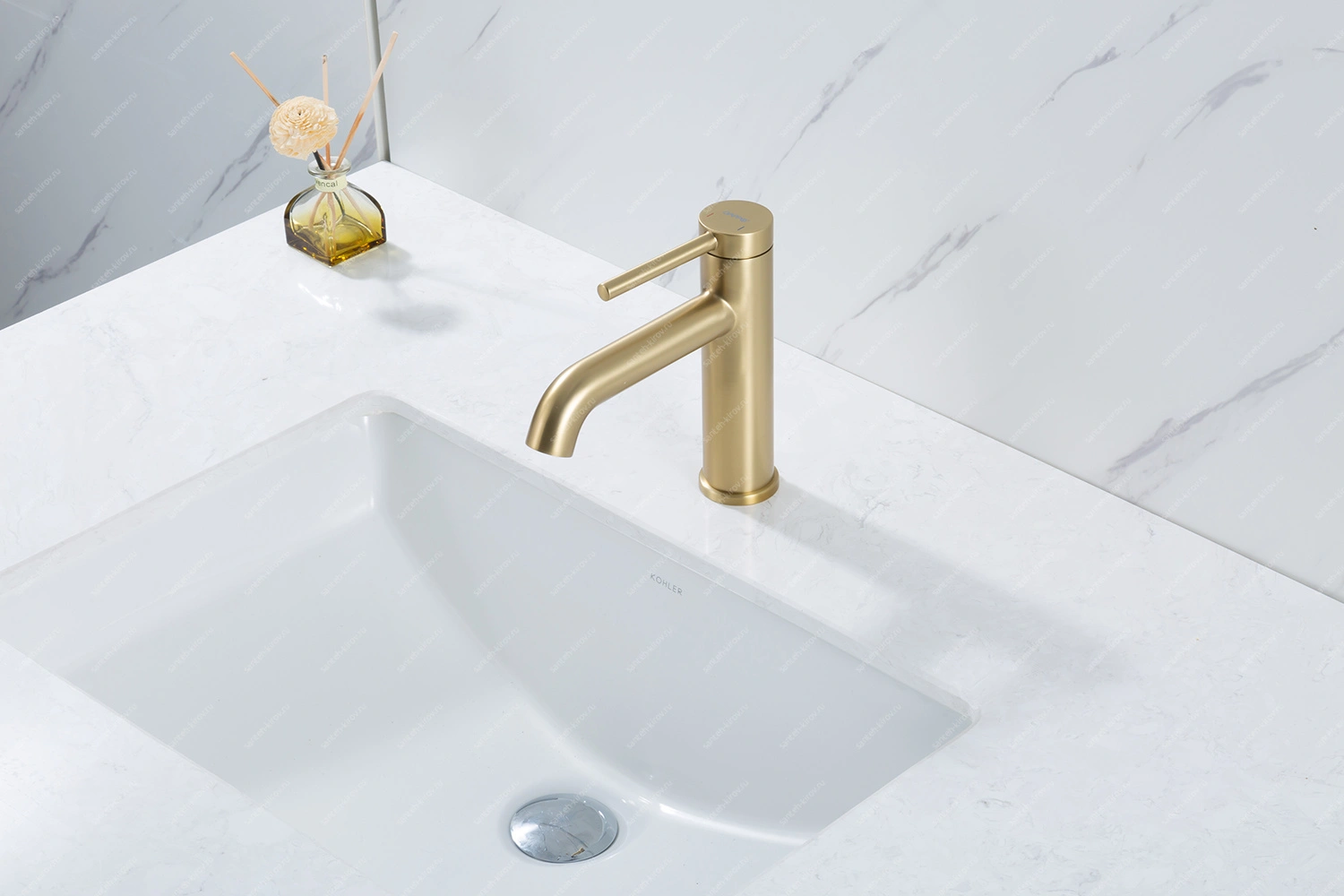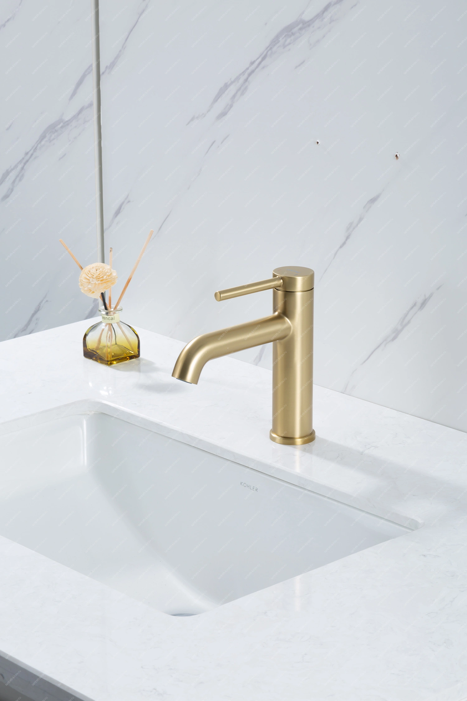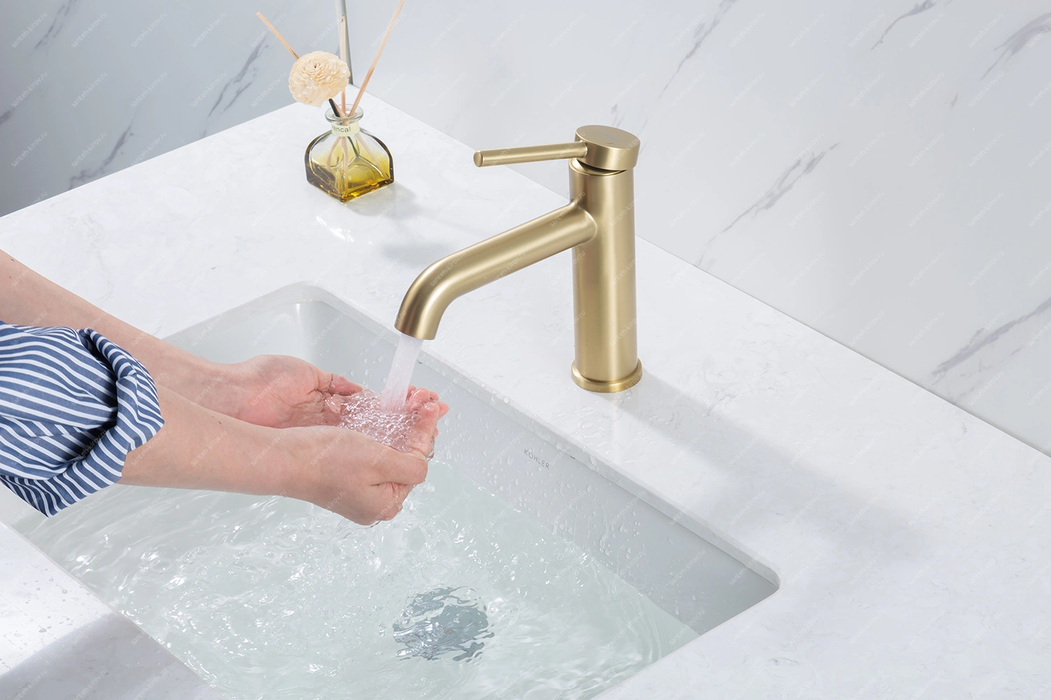 Смеситель для умывальника монтируется на умывальник. Этот сантехнический прибор служит для обеспечения нужной температуры воды и её напора. Внутри смеситель для умывальника имеет кран-буксы или картридж, благодаря которым смешивается холодная и горячая вода.