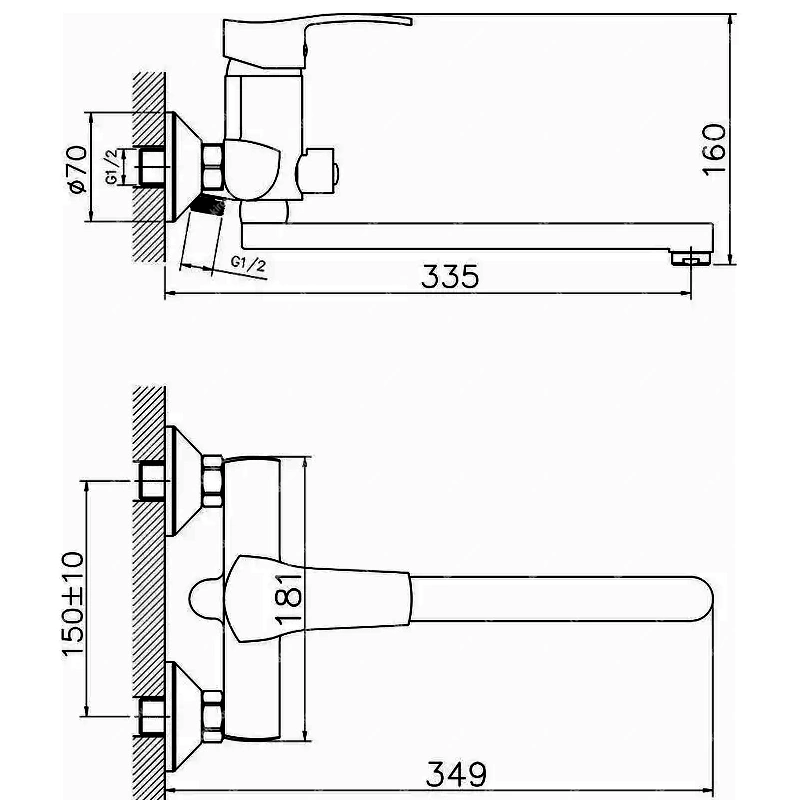 Смеситель для ванны и душа монтируется на стену. Этот сантехнический прибор служит для обеспечения нужной температуры воды и её напора. Внутри смеситель для ванны и душа имеет кран-буксы или картридж, благодаря которым смешивается холодная и горячая вода.
