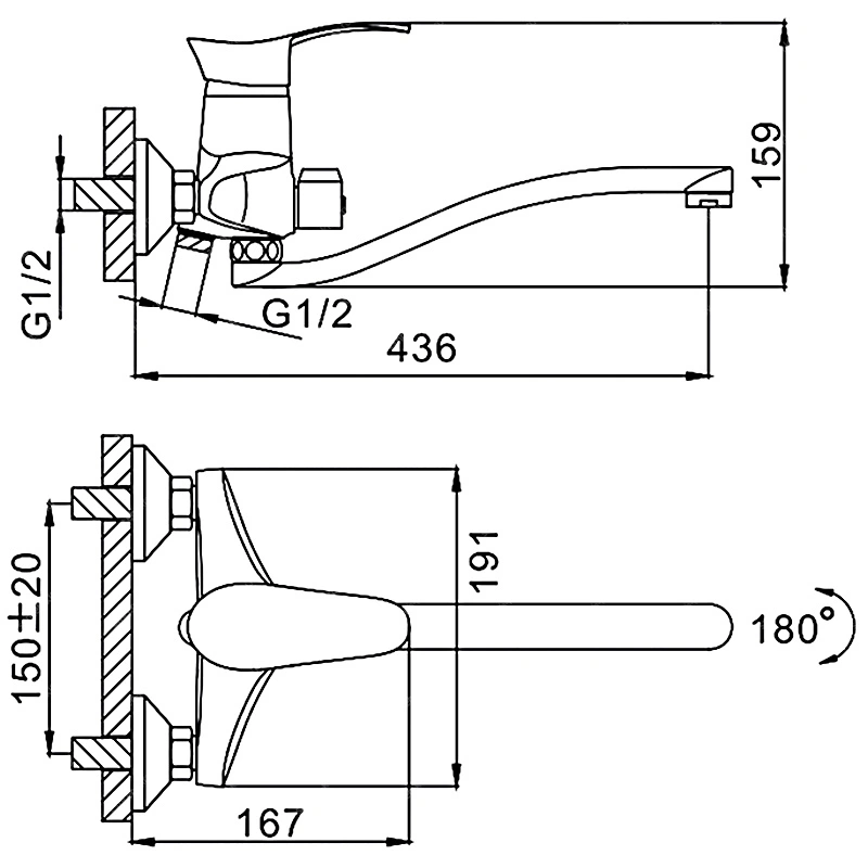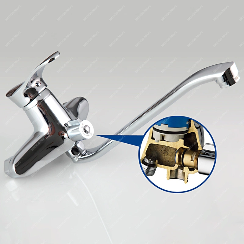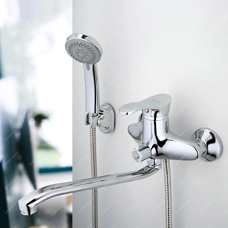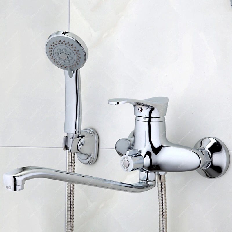 Смеситель для ванны и душа монтируется на стену. Этот сантехнический прибор служит для обеспечения нужной температуры воды и её напора. Внутри смеситель для ванны и душа имеет кран-буксы или картридж, благодаря которым смешивается холодная и горячая вода.