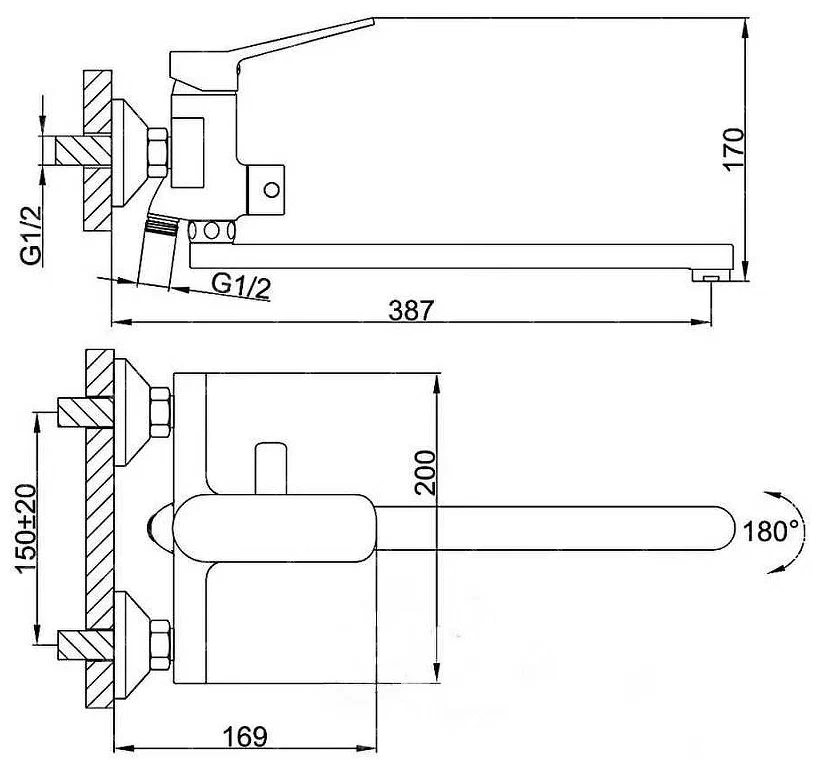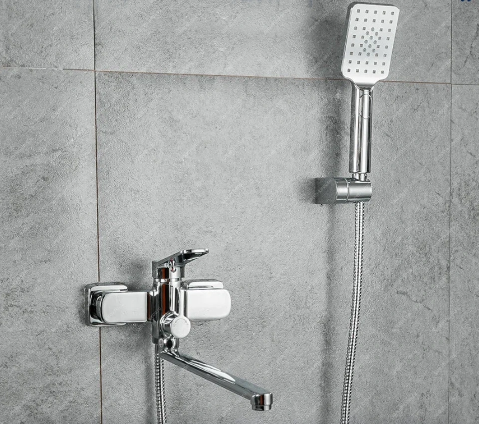 Смеситель для ванны и душа монтируется на стену. Этот сантехнический прибор служит для обеспечения нужной температуры воды и её напора. Внутри смеситель для ванны и душа имеет кран-буксы или картридж, благодаря которым смешивается холодная и горячая вода.