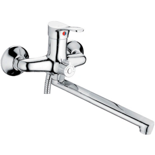 Смеситель для ванны и душа монтируется на стену. Этот сантехнический прибор служит для обеспечения нужной температуры воды и её напора. Внутри смеситель для ванны и душа имеет кран-буксы или картридж, благодаря которым смешивается холодная и горячая вода.