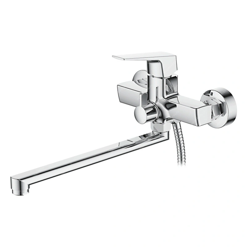 Смеситель для ванны и душа монтируется на стену. Этот сантехнический прибор служит для обеспечения нужной температуры воды и её напора. Внутри смеситель для ванны и душа имеет кран-буксы или картридж, благодаря которым смешивается холодная и горячая вода.