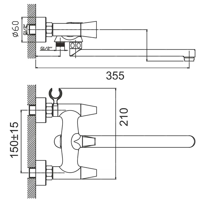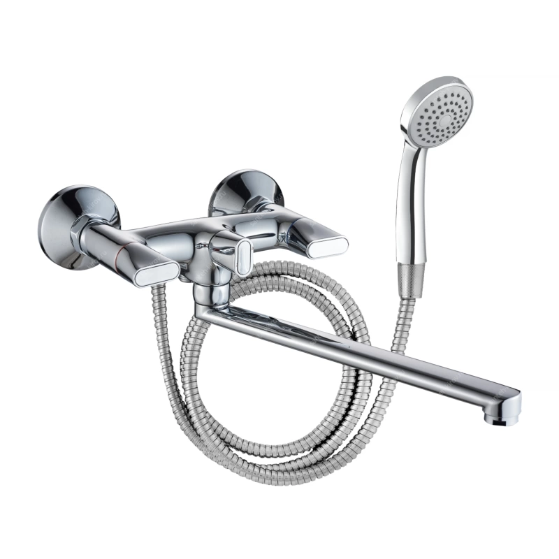 Смеситель для ванны и душа монтируется на стену. Этот сантехнический прибор служит для обеспечения нужной температуры воды и её напора. Внутри смеситель для ванны и душа имеет кран-буксы или картридж, благодаря которым смешивается холодная и горячая вода.