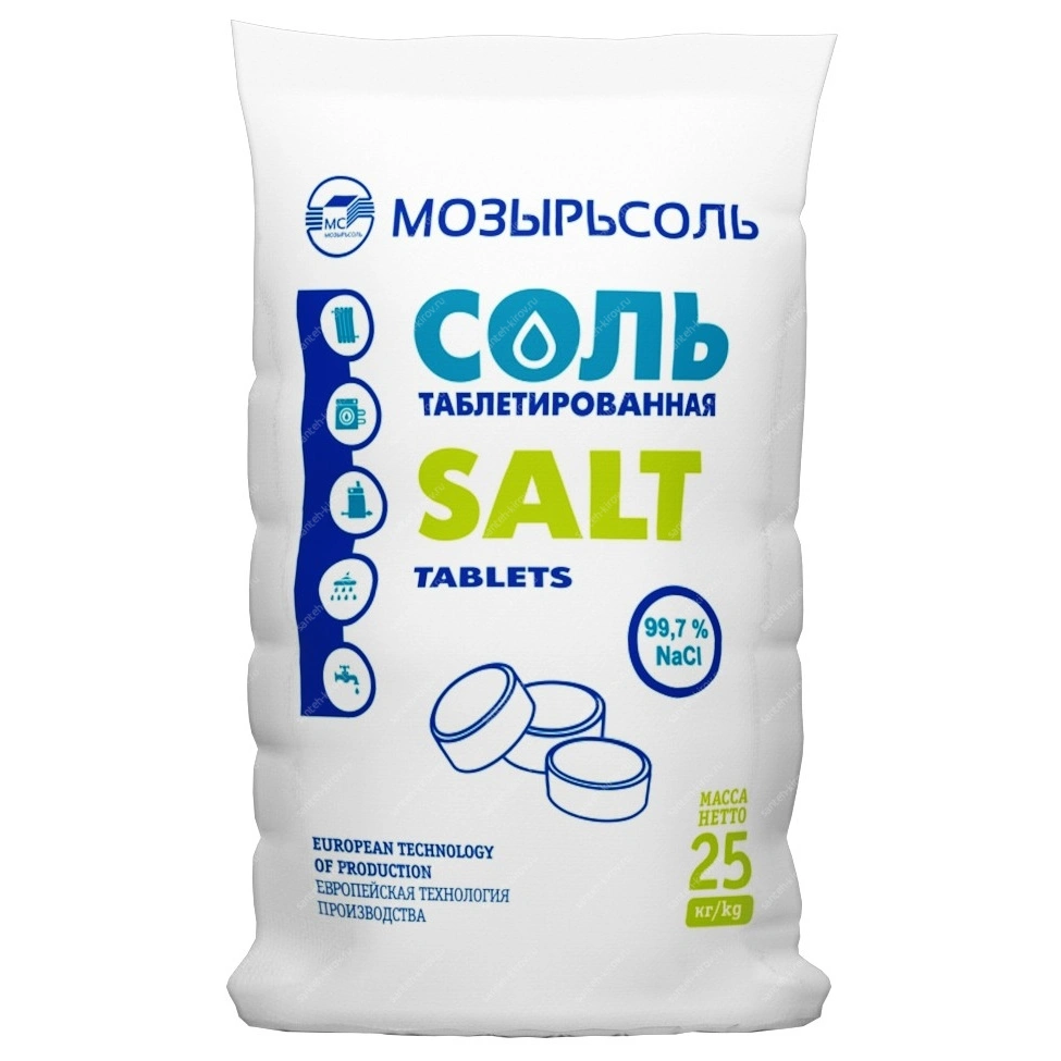 Таблетированная Мозырьсоль предназначена для восстановления ионообменных смол водоумягчительных установок, применяемых в процессе подготовки и умягчения воды для пищевых, фармацевтических и иных производств, в промышленных и частных системах отопления и горячего водоснабжения, а также в бытовых водонагревательных приборах.