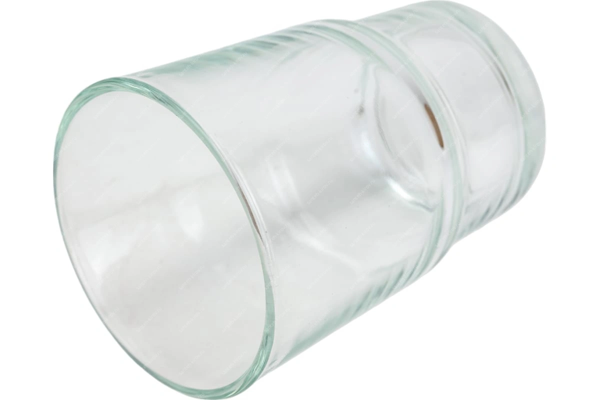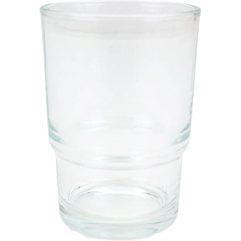 Небольшой стеклянный стакан для зубных щеток выполнен из прозрачного стекла.