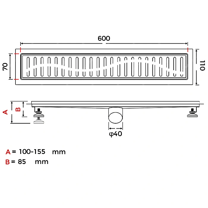 Трап горизонтальный L-600мм х 70мм Gappo 86007-36