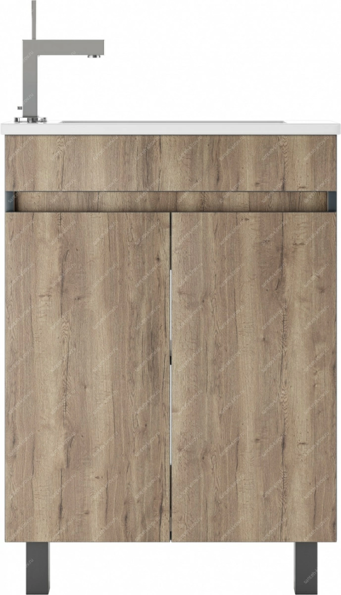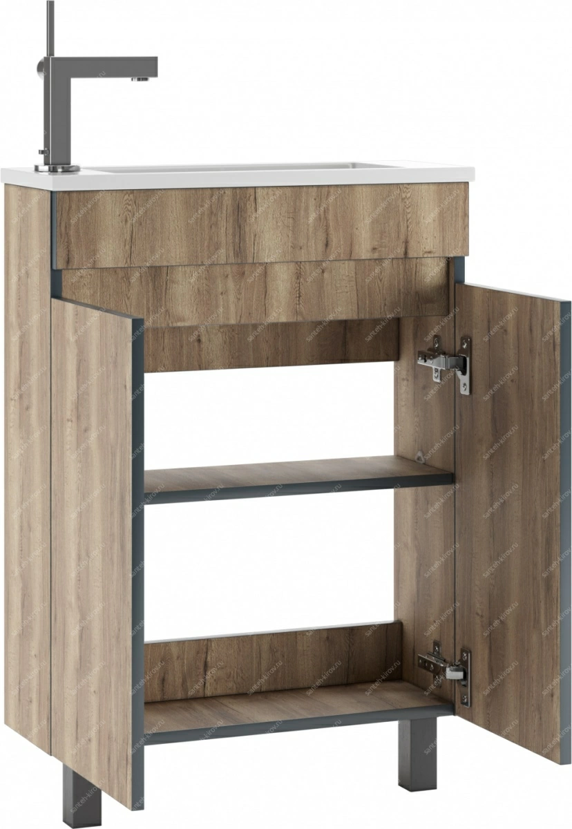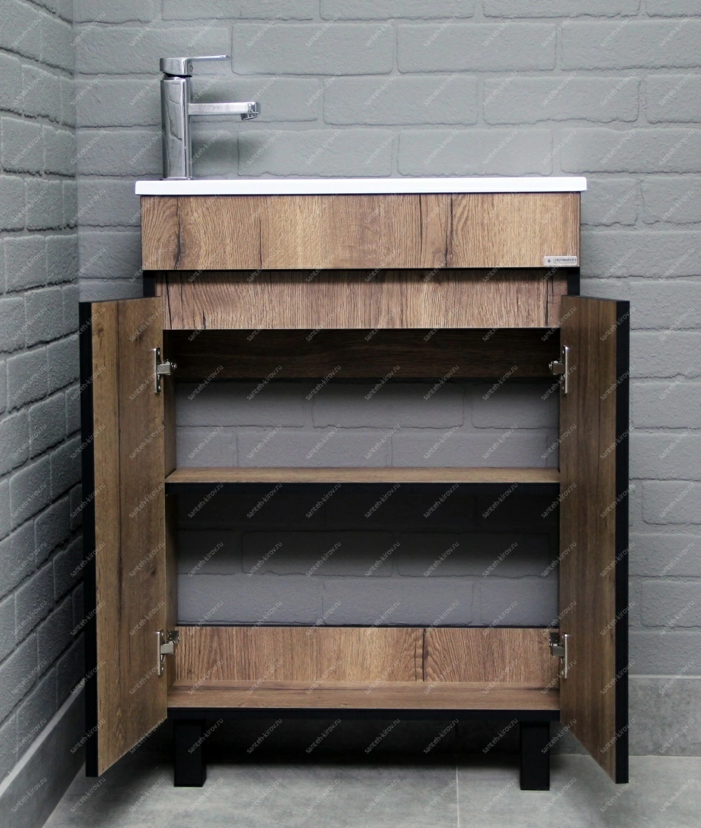 Напольная тумба идеально подходит для установки под умывальник или раковину. Она предоставляет место для хранения необходимых в быту предметов и аксессуаров, способствуя поддержанию порядка и организованности пространства. Конструкция изделия предусматривает возможность размещения полки под раковину или использования как шкафчика под накладную раковину.