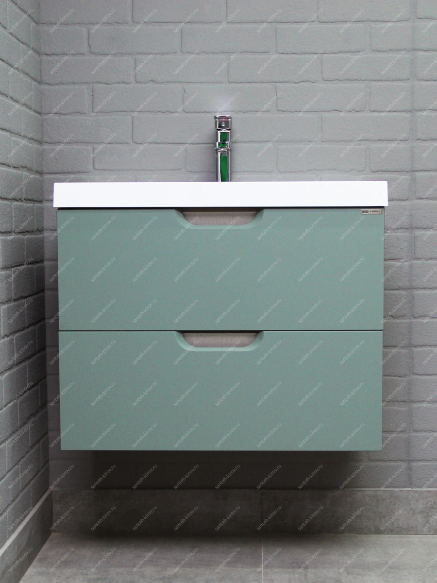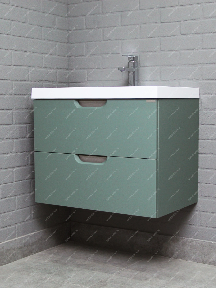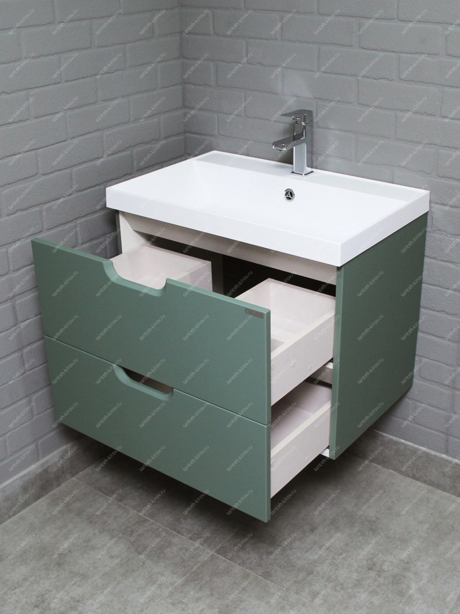 Тумба подвесная под раковину 70 Dune Олива В2 Домино создаст современный акцент в интерьере ванной комнаты, добавив лёгкости и простора благодаря своему стильному серому оттенку.