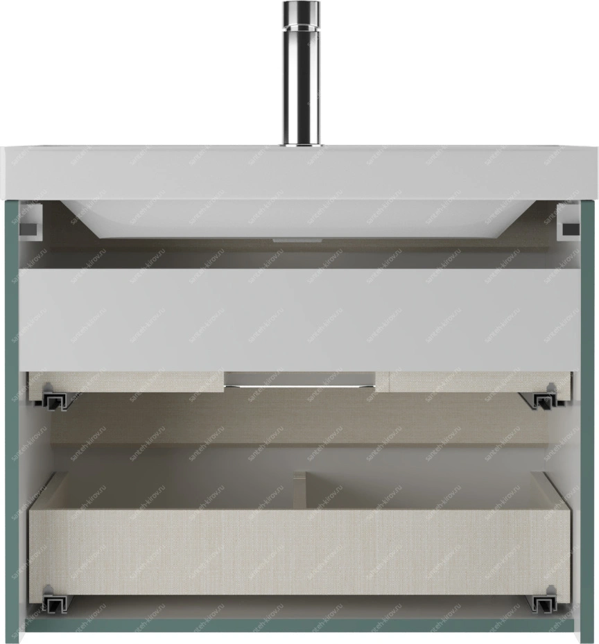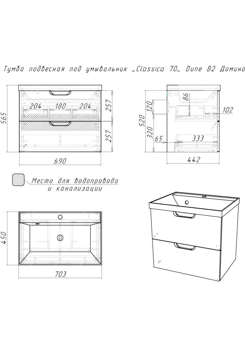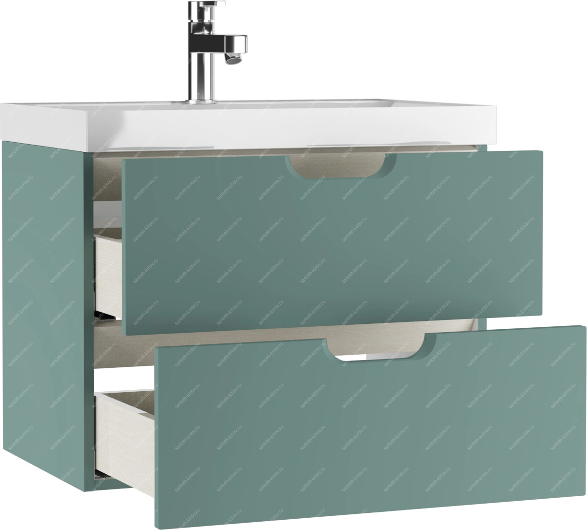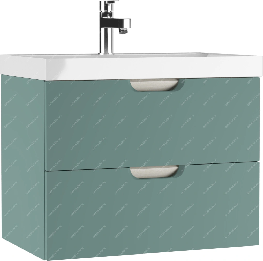 Тумба подвесная под раковину 70 Dune Олива В2 Домино создаст современный акцент в интерьере ванной комнаты, добавив лёгкости и простора благодаря своему стильному серому оттенку.