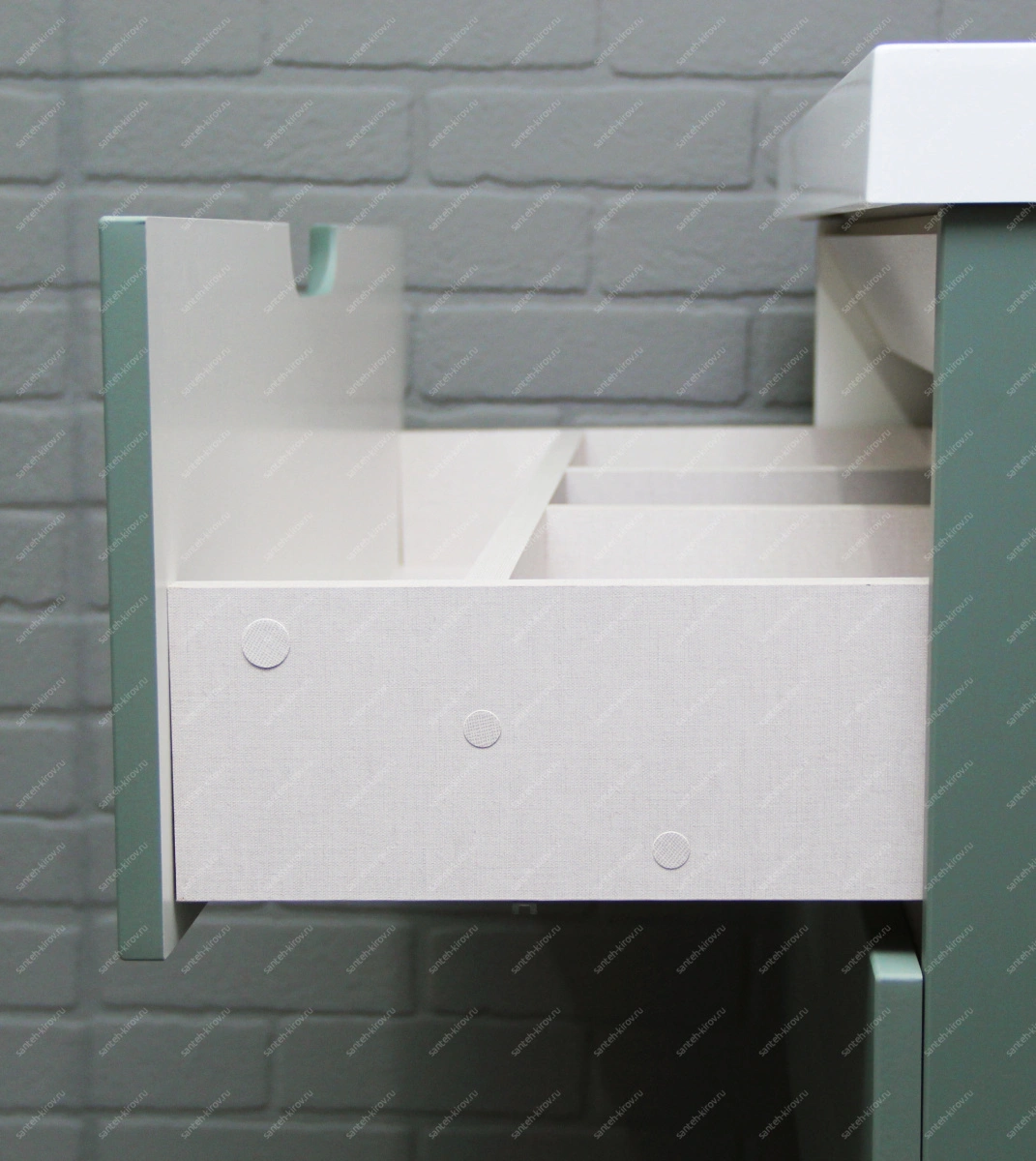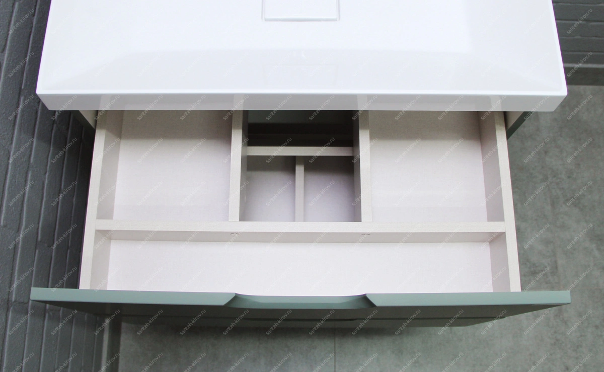 Тумбочка поставляется в собранном виде, что экономит время на установку и позволяет сразу же насладиться удобством её использования. Поверхность имеет благородный матовый эффект, который способствует созданию уютной атмосферы в ванной комнате.