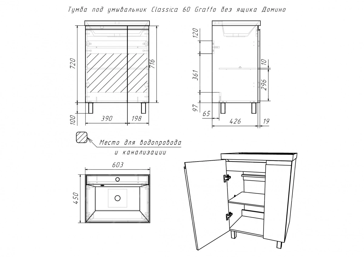 Тумба под умывальник Graffo без ящика графит Домино, сочетает в себе не только элегантный внешний вид, но и практичность. Ее конструкция позволяет удобно разместить необходимые банные принадлежности и аксессуары в пределах досягаемости. Процесс установки не вызовет затруднений благодаря простоте и продуманной конструкции.