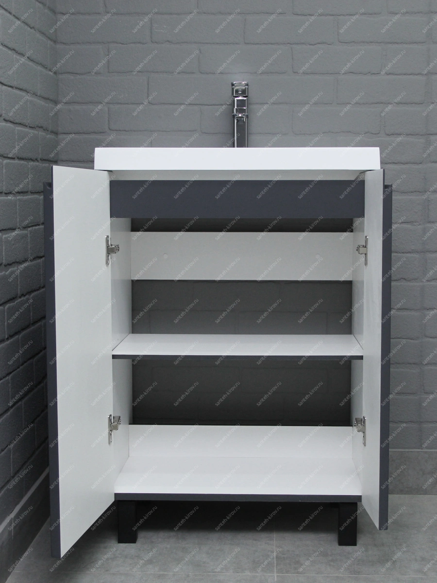 Тумба под раковину 60 Graffo без ящика графит Домино - идеально дополнит ваш интерьер ванной комнаты, сочетая стильный графит и функциональность. Эта модель от известного производителя, создает атмосферу современности и утонченности, придавая вашему пространству чистоту и легкость. Компактные размеры тумбы органично вписываются даже в небольшие ванные комнаты, предоставляя достаточно места для установки умывальника.