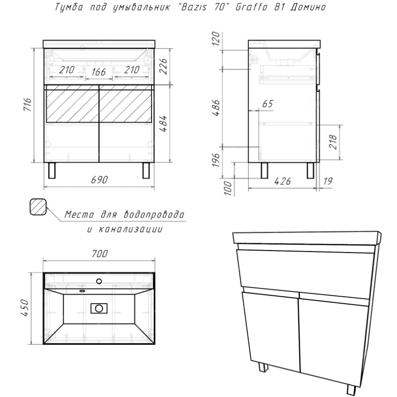 Тумба Graffo В1 под UNIT 70 Домино DGr2401T