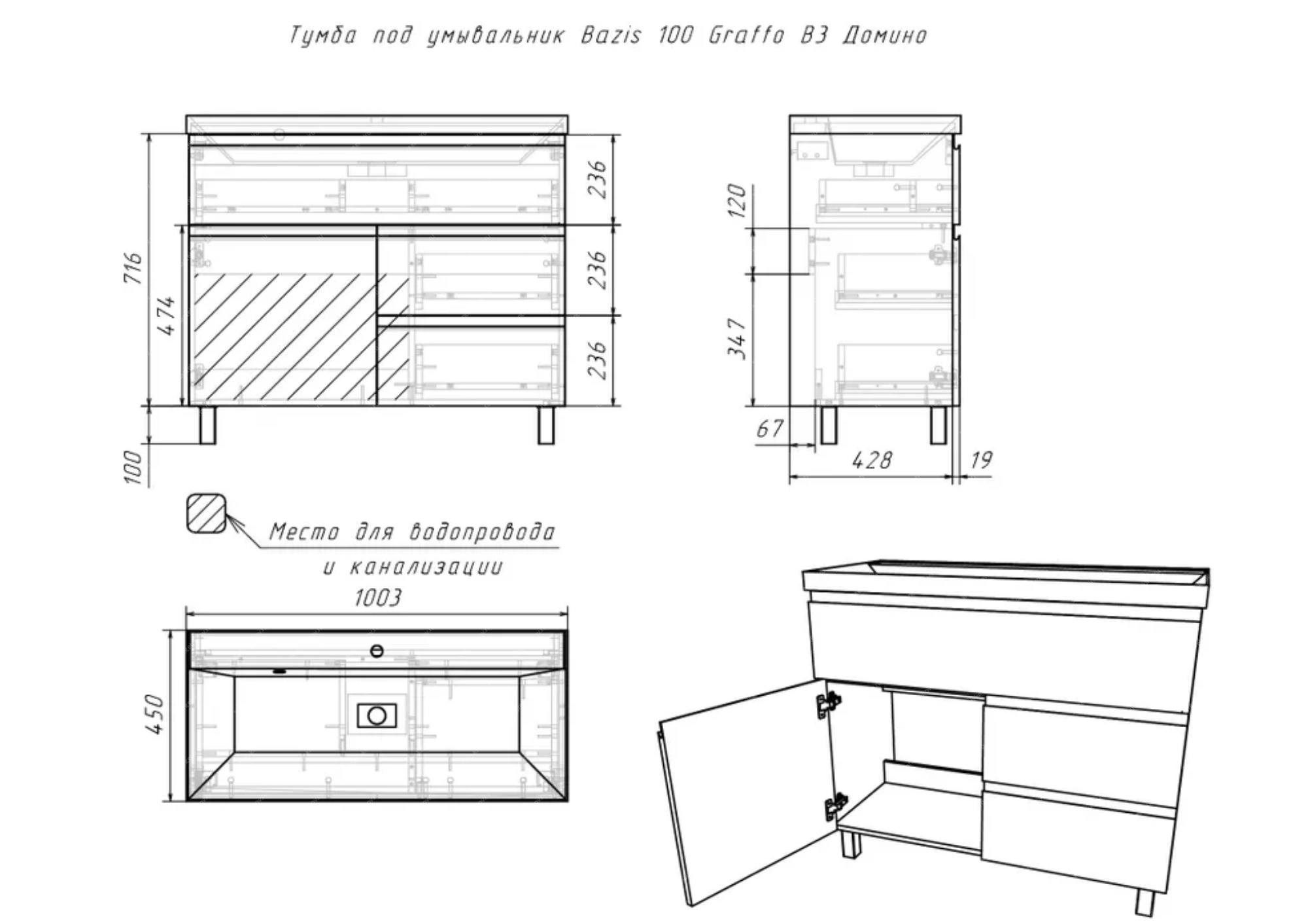 Тумба Graffo В3 под Bazis 100 Домино DGr2409T