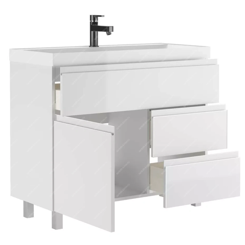 Тумба под умывальник "Bazis 100" Graffo белый глянец В3 Домино представляет собой функциональную и стильную мебель для ванной. Это универсальная тумбочка, идеально подходящая для установки под раковину в ванную комнату. Она выполнена в современном дизайне и станет отличным дополнением интерьера.